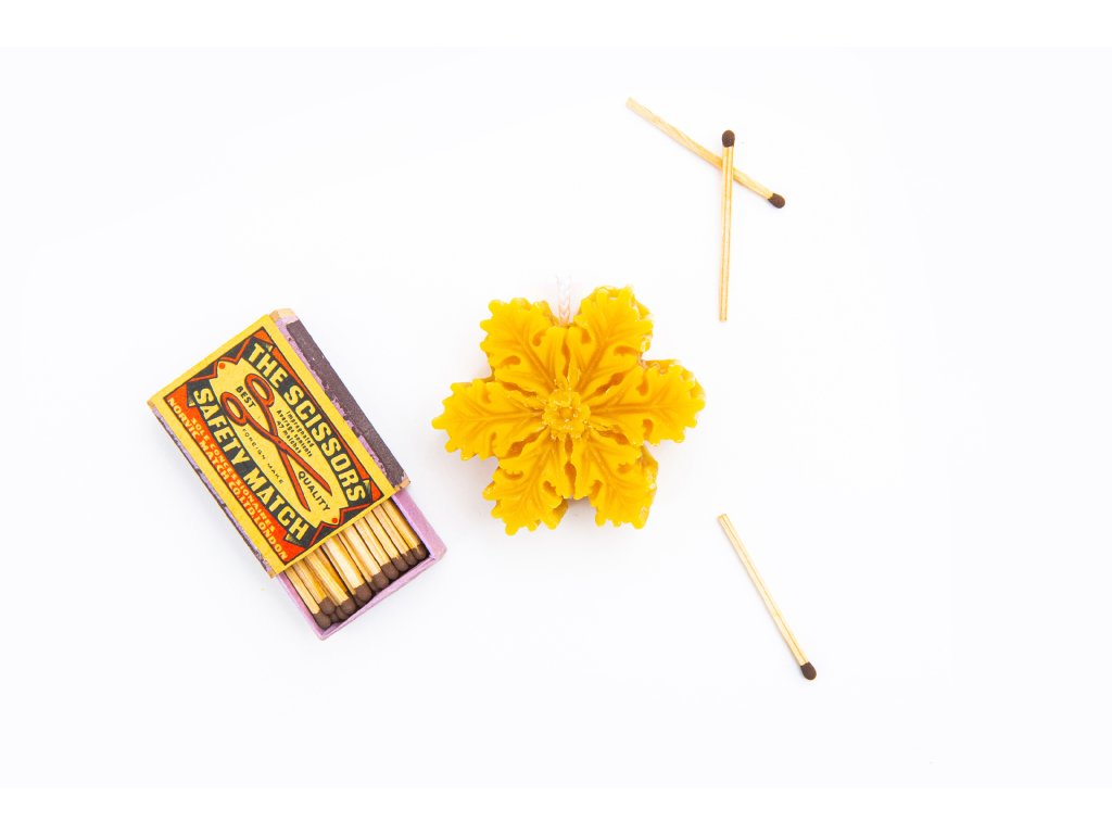 Svíčky jsou vyrobeny ze 100% včelího vosku z ČR a bavlněného knotu.