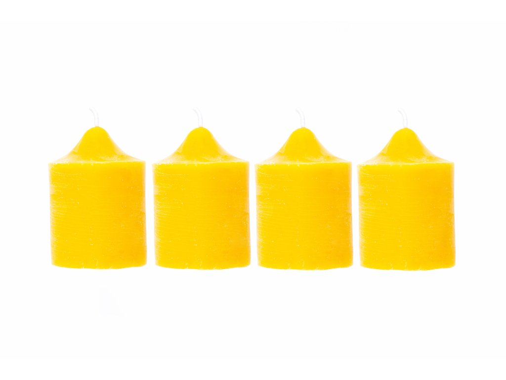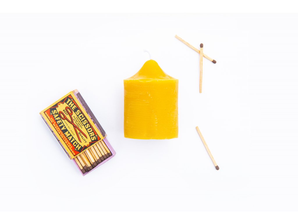 Svíčky jsou vyrobeny ze 100% včelího vosku z ČR a bavlněného knotu.