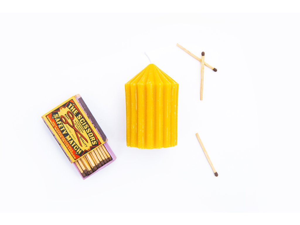 Svíčky jsou vyrobeny ze 100% včelího vosku z ČR a bavlněného knotu.
